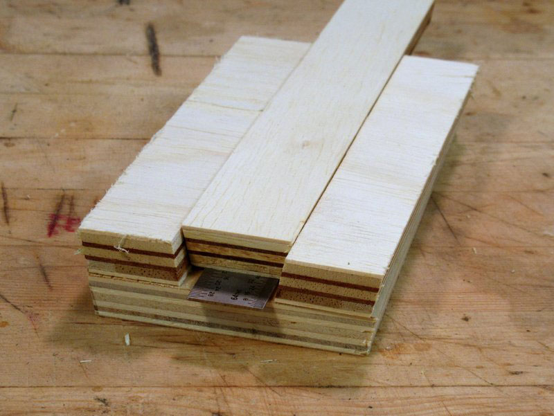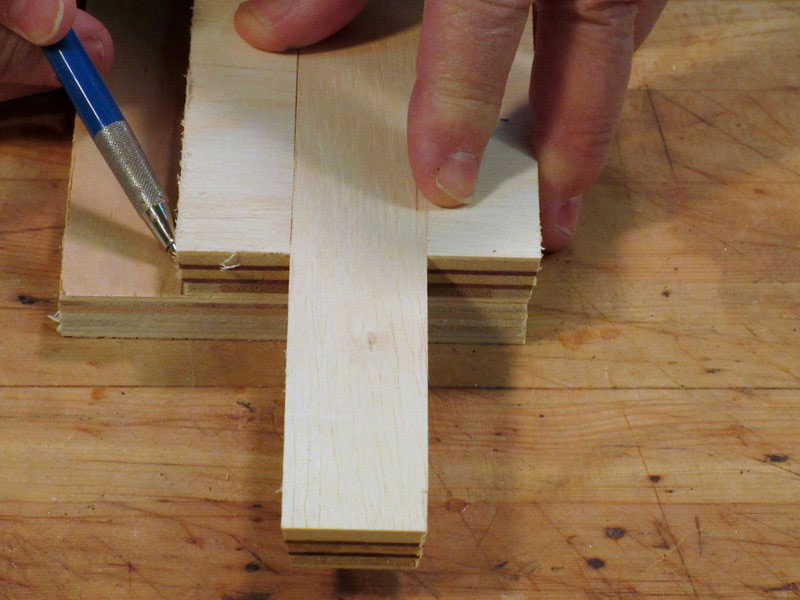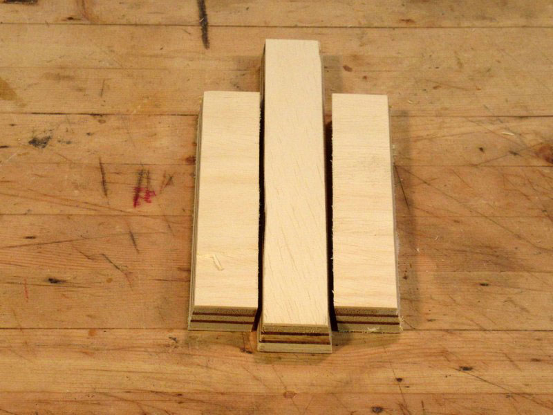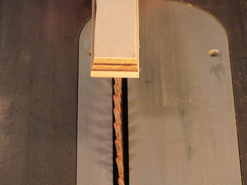 degrees on both edges. So I started by cutting one long 24 inch length of plywood, about 1-1/4 inch wide