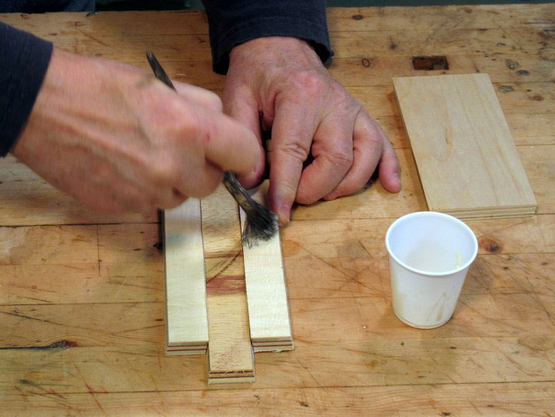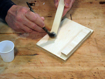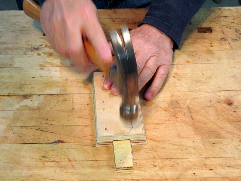 I assembled the ruler slide with yellow wood glue and brads to hold things in place while the glue dried
