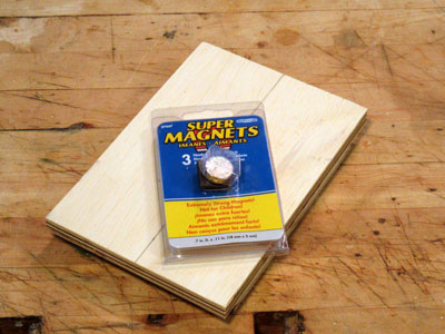 It's cheap – I used a piece of 1/2" plywood about 12 inches by 24 inches (and had a good bit left over), a