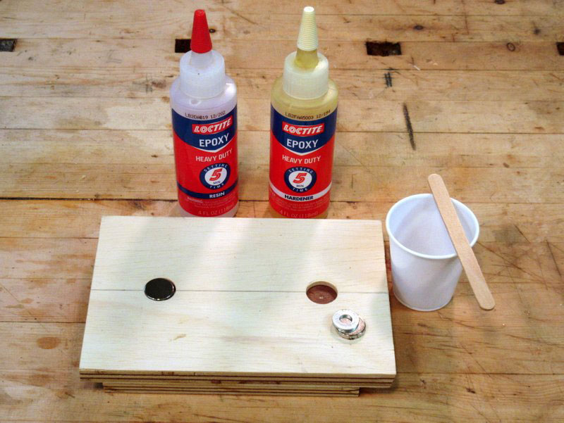 I used epoxy glue to hold these magnets in place (Figure 24). Note the extra washer – a correction for an