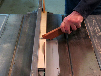 I swapped the fence for a miter gauge, and cut the 24 inch length into 4 cleats, each slightly less than 6