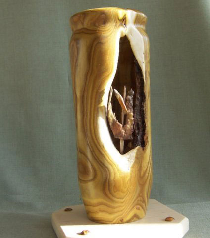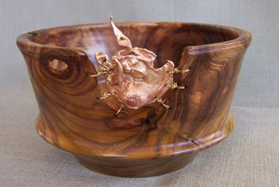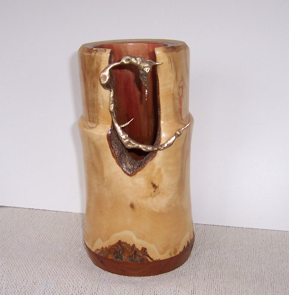 Another interest that I had upon retiring was to take metal art classes at our local university which lead me to water casting among a number of metal techniques. This has offered me the opportunity to experiment and combine bronze, brass and copper casting with some wood turnings that had a void and needed embellishment.