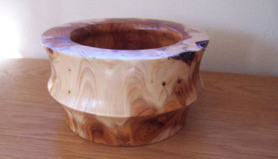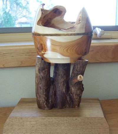 I turn bowls primarily for the Empty Bowls fundraiser for our local food pantry but I have found a particular pleasure in turning a piece from an odd chunk of wood that creates something a little different.