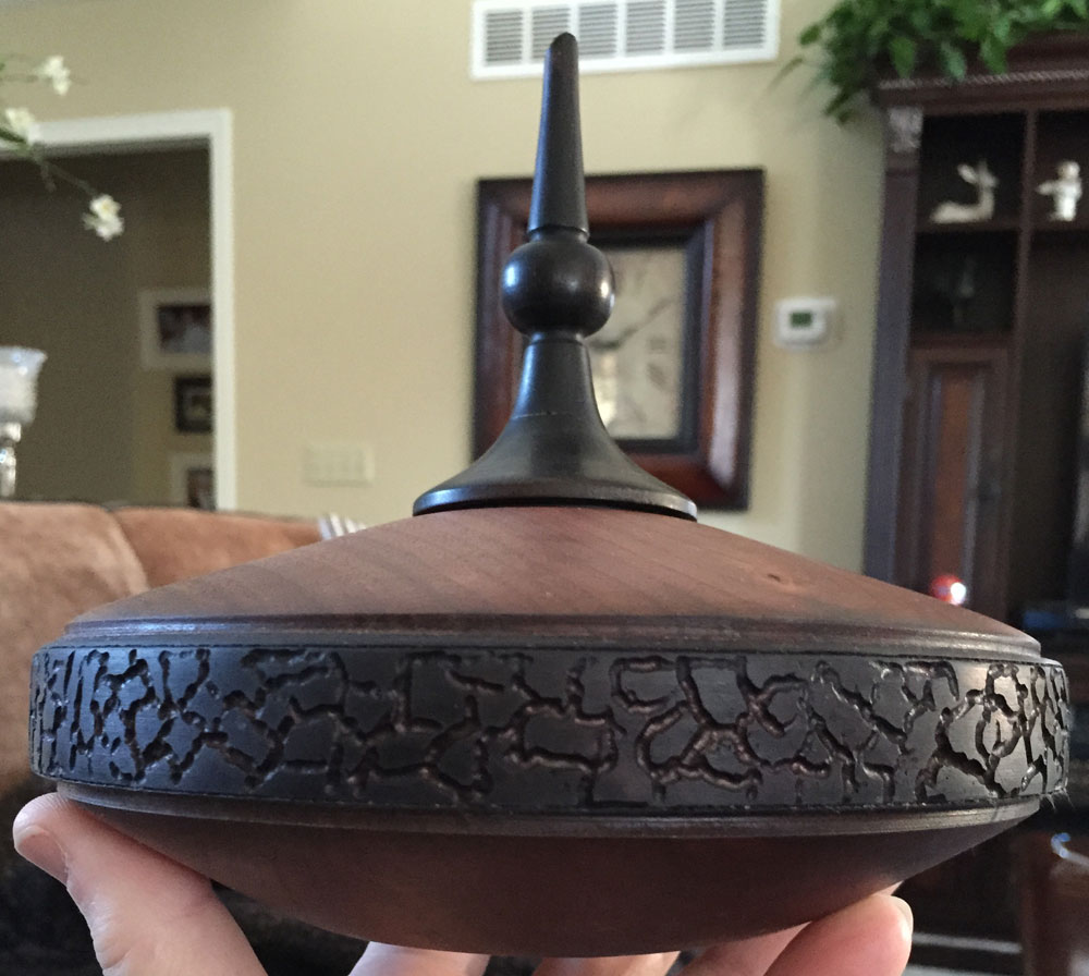 walnut lid. Project is approximately 11" diameter and 9"