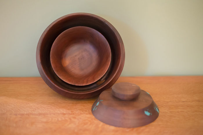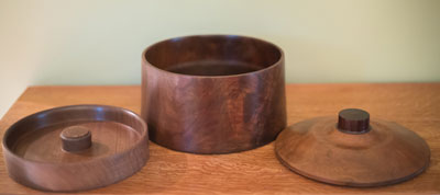 This is a double walnut bowl with a walnut lid from the