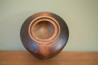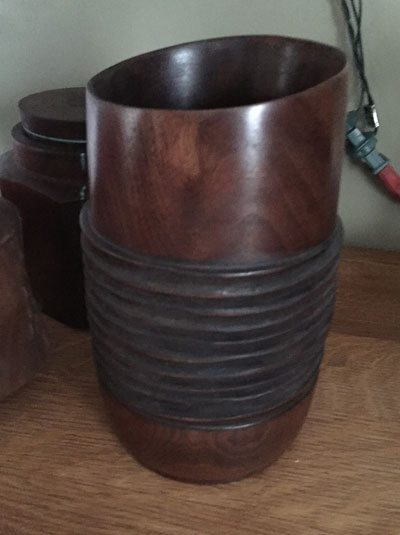 Walnut vessel carved with Ebony top