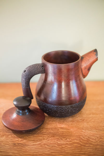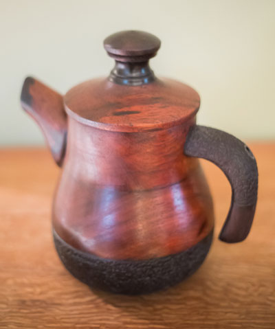 Rosewood tea pot carved turned with ebony accents