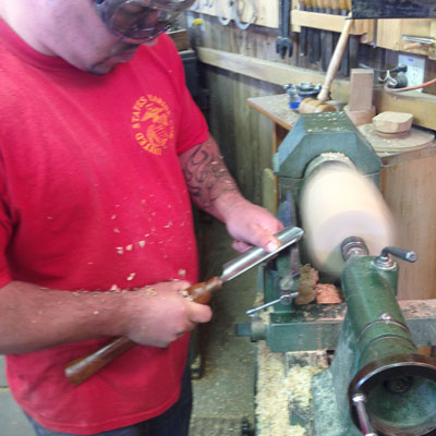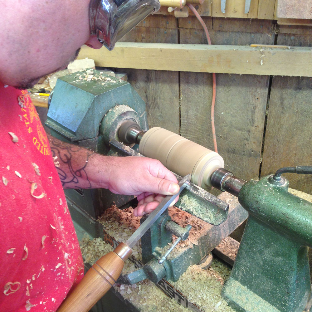 , and from their arrival Ryan began talking about finding a day in the shop when he could begin learning to turn wood. Apparently the desire to explore woodturning has been on Ryan's mind steadily since he stayed above the shop a year ago, and he arrived with this as a priority for his off-time in Castine.