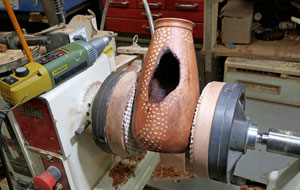In my shop every bit of horizontal space is filled and overflowing. When I need to hold a bowl, a spoon, or a hollow form for carving or texturing, I find it difficult at best and not very safe to hold it with one hand and carve or texture with the other.