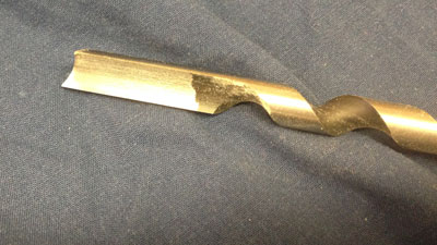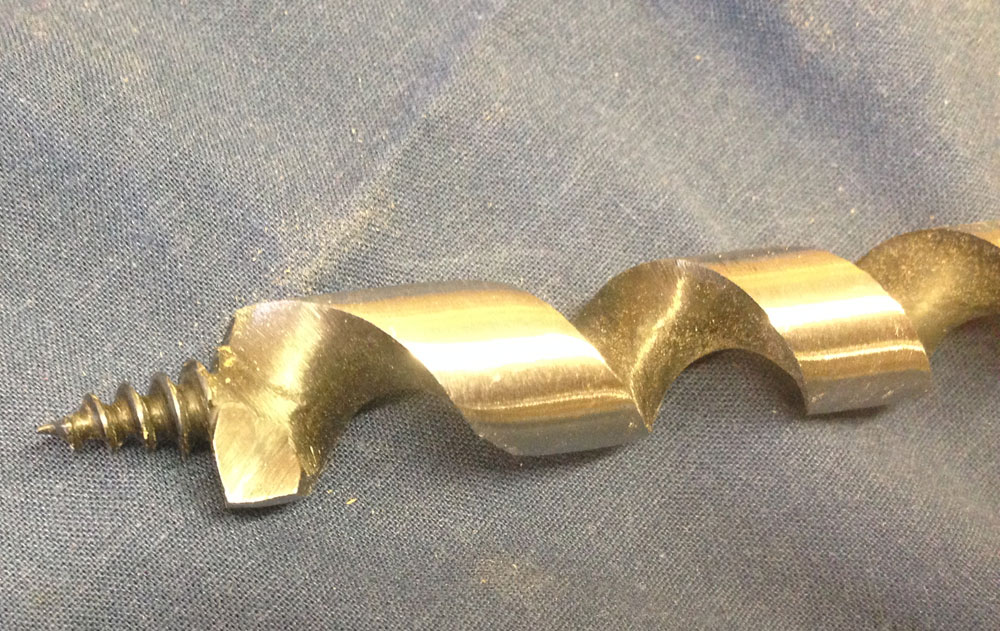 sharpened, it drills quickly and accurately creating a 3/8" pilot hole through the wood.
