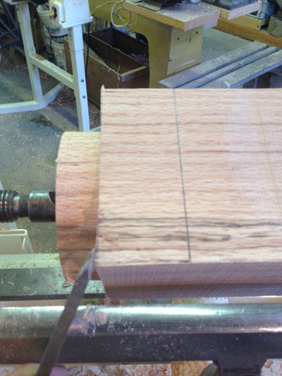 preparation for using the Sorby 3/8" Beading and Parting tool to dimension the round version of the final tenon.
