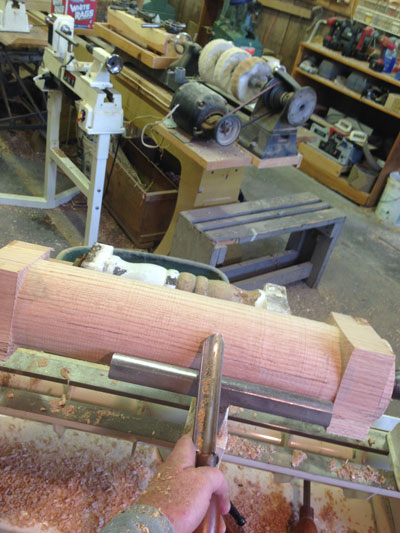With both ends clearly defined, rounding with the roughing gouge goes quickly. I prefer