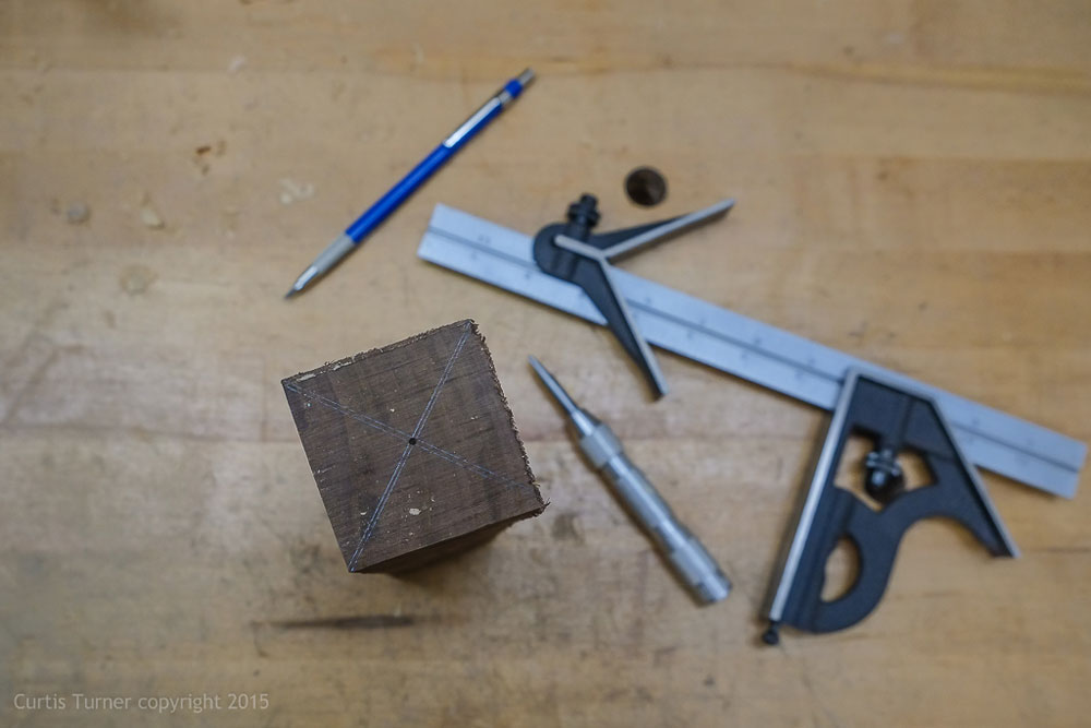I first marked the blank to find the center. This blank was less than a perfect square as you can see from
