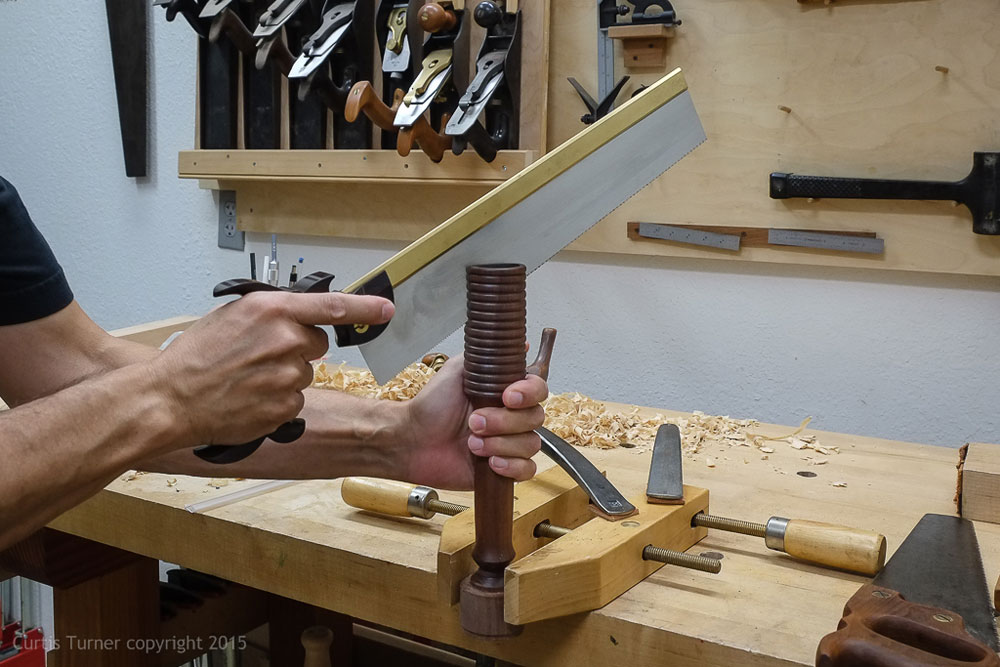 first used a backsaw to make most of the cut. Finally, I used a small panel saw to make the cut deeper. This setup worked perfectly.