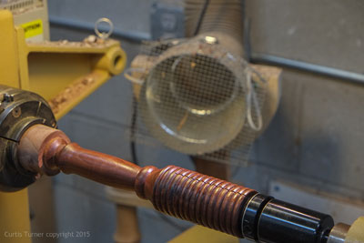 I wanted to avoid splitting the walnut. I turned the handle leaving a good 1/2" or so still connecting the handle to the waste