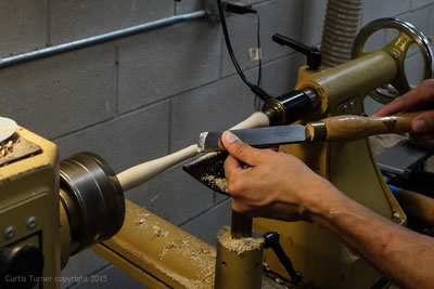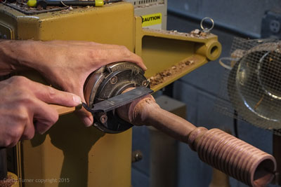 Next, I used a pencil to mark the complete bead and then used the long point of a skew to define each bead.