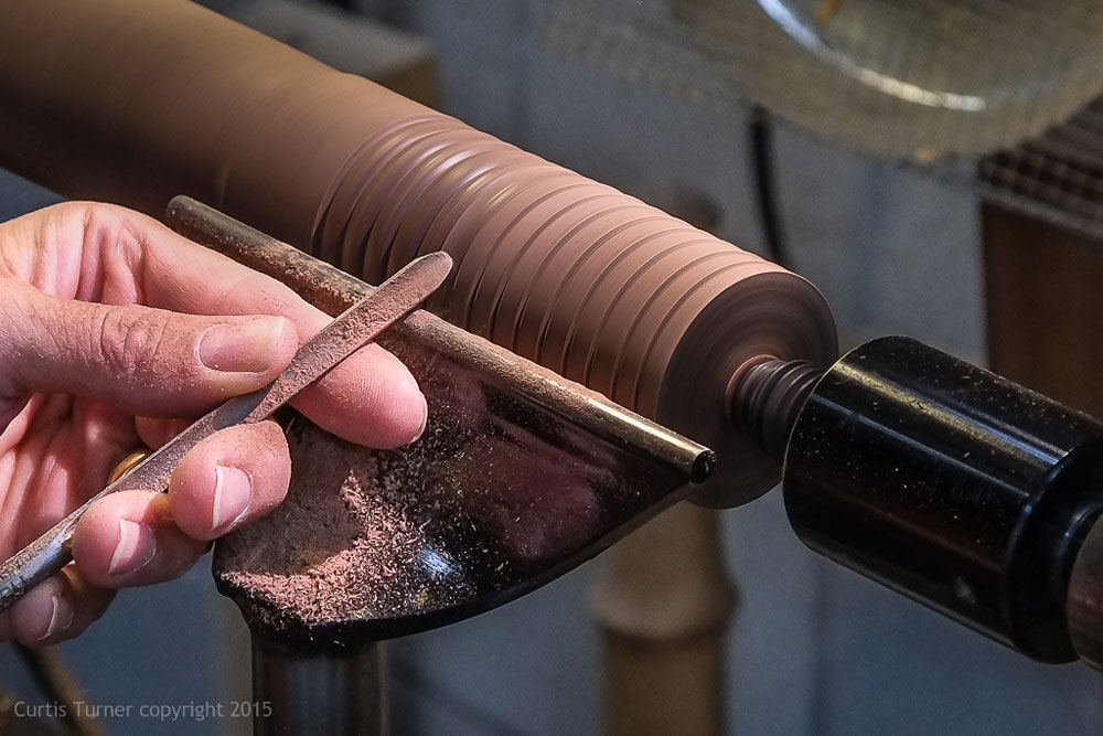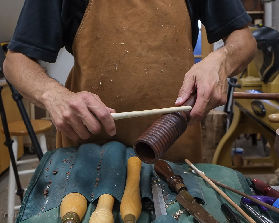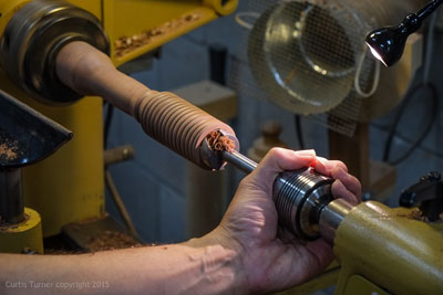 Once I completed the beads, I began to rough shape the handle. I wanted to drill out the blank before I