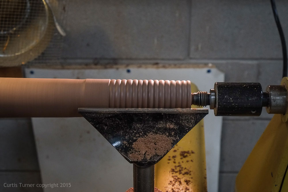 I then turned the blank to round and used a set of dividers to layout 1/4" beads.