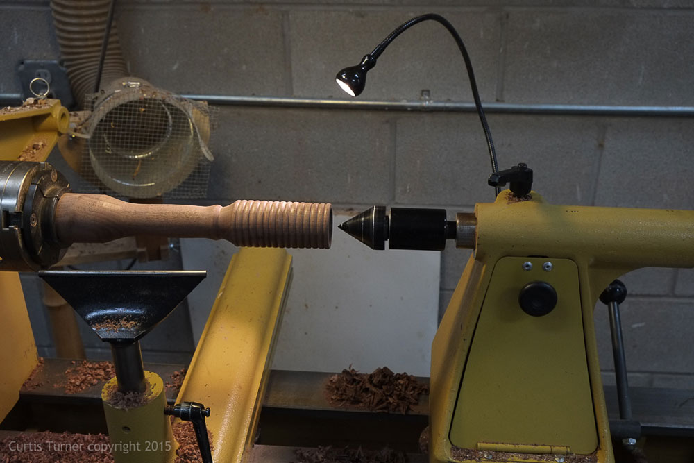 Once the drilling was complete, I was ready to tackle the handle. I mounted the cone center on the live