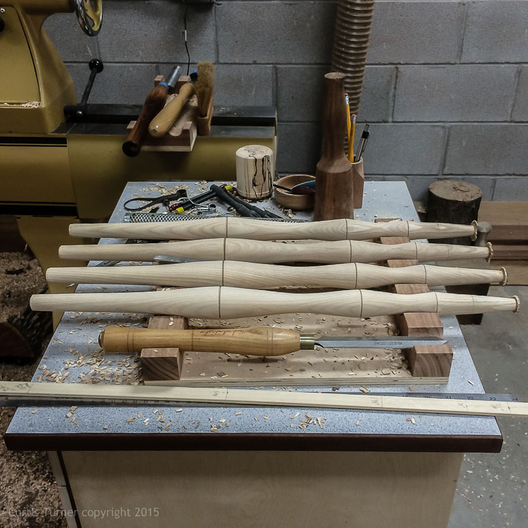 Peter Galbert. This project requires turning several matching parts. While portions could be turned by