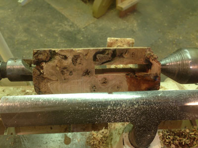 The mortise machine method seems better suited to highly figured wood like this cherry burl.