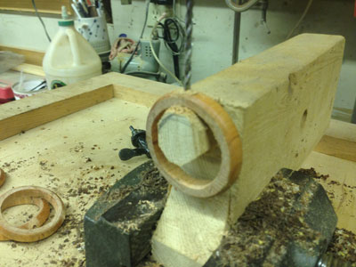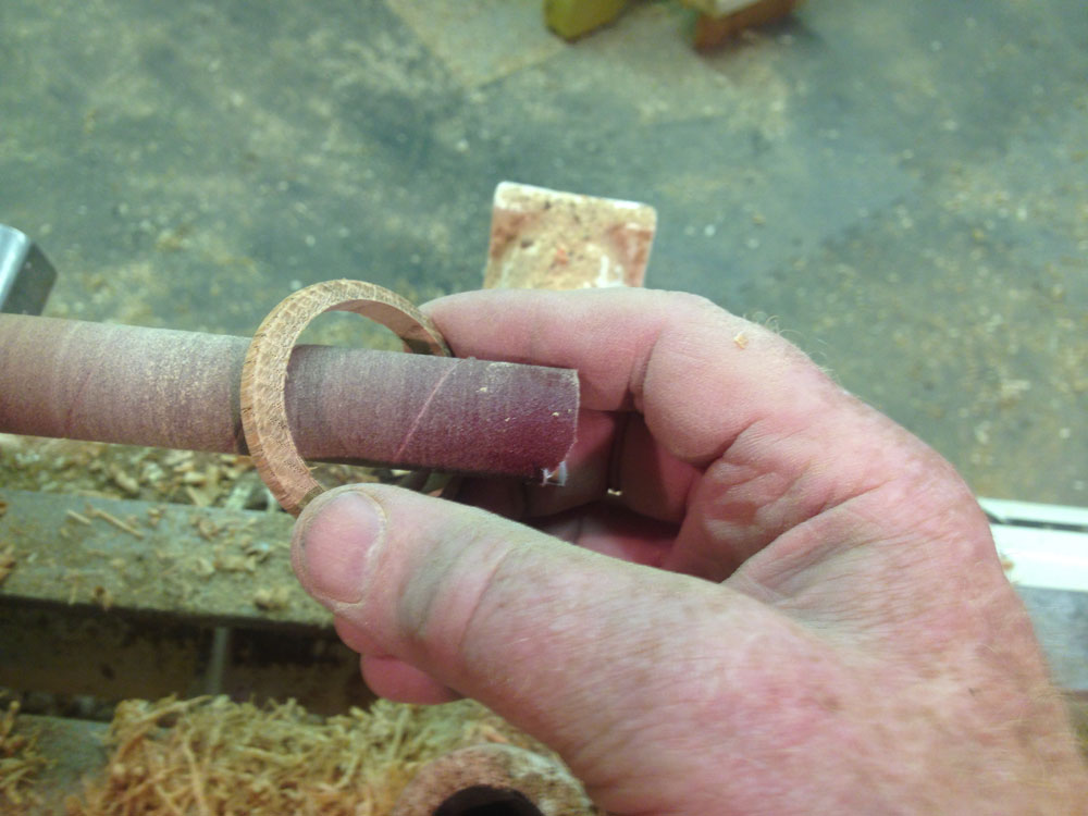 Set up a sanding station for sanding the inner circle and hard edges. One way is to use the