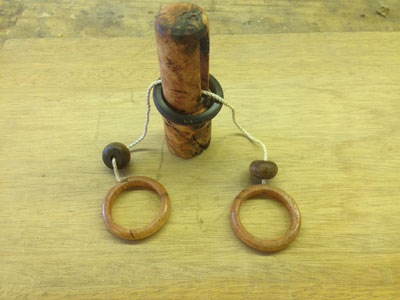 rings fastened with a length of string that runs through two beads. The object of the puzzle is to first