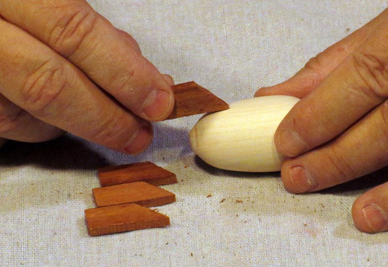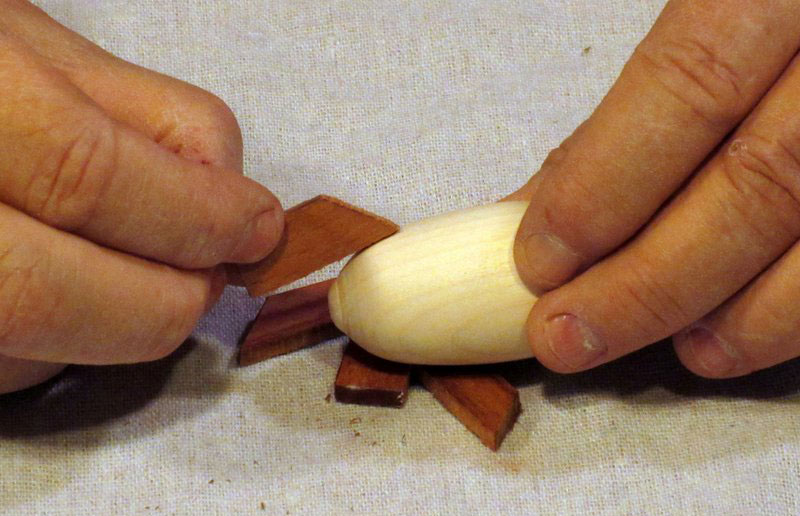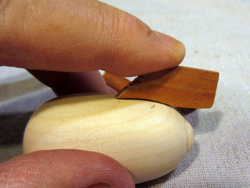 I cut a small cove into the end of the cone. (I could have mounted it with a tenon into a hole on the dirigible…this actually would have been a better method, as I found out later when I tried to glue the nose cone in place.)