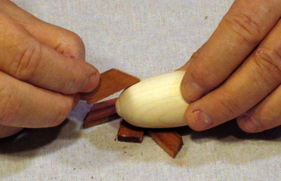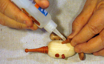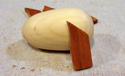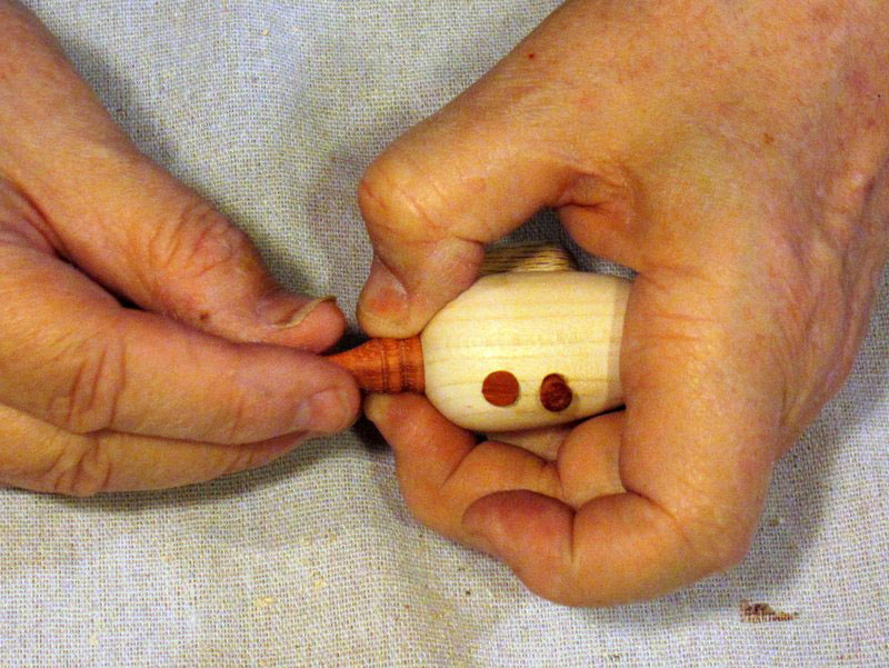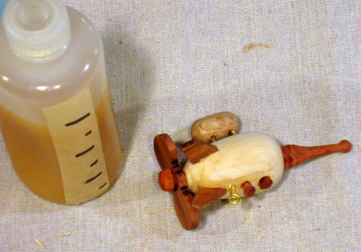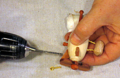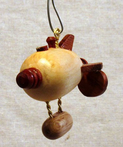 Make it bigger. The difficulty in making this is not in the various components (they are all simple shapes, easy to turn or saw out). However, the small size I picked, while ideal for a Christmas ornament, makes everything somewhat of a challenge. Although a larger size, say 4 inches long overall rather than 3, will add some weight to the ornament, it will make it easier to shape and assemble the parts.