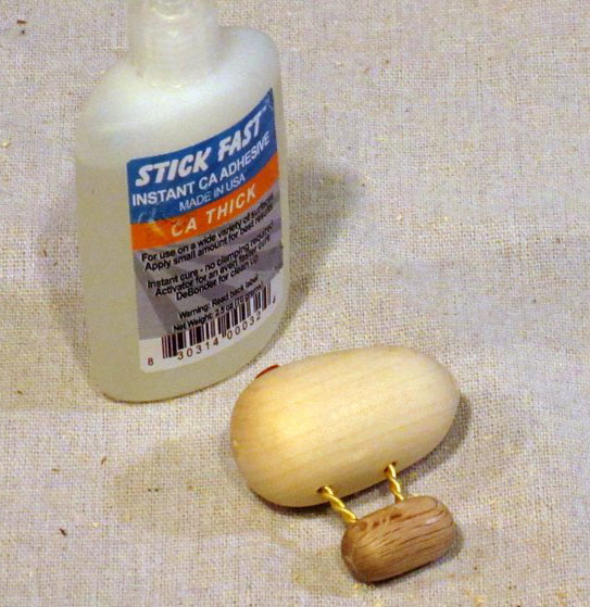 Steampunk vehicles that are powered by steam engines must have a smokestack. Using a small piece of padauk, I turned a very small peg, about 3/16 of an inch in diameter, with a larger piece at the top. The smokestack will be glued into a small hole on the top surface of the lift envelope.