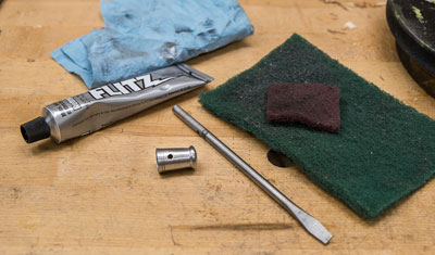 to remove paint, glue and small nicks. Then I used Flitz, a metal