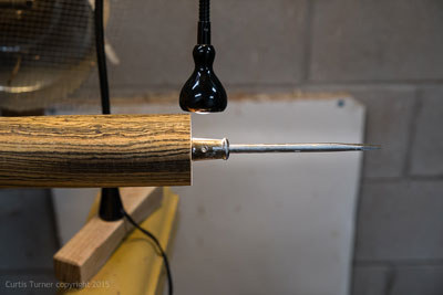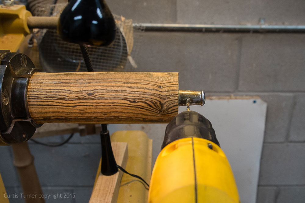 drilled half way through the ferrule and wood. I then rotated the blank 180 degrees and repeated the