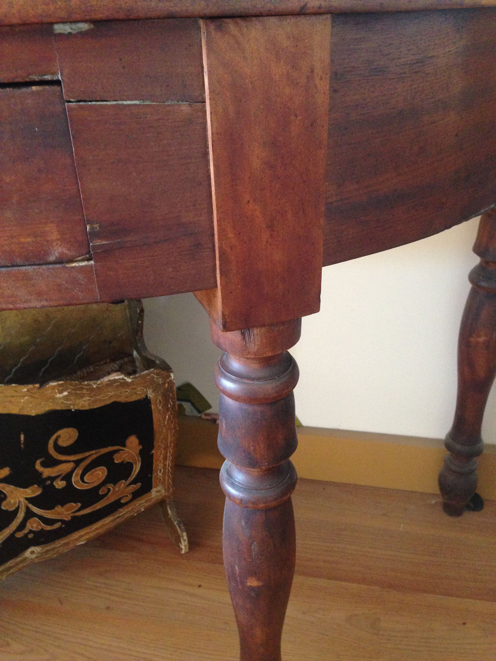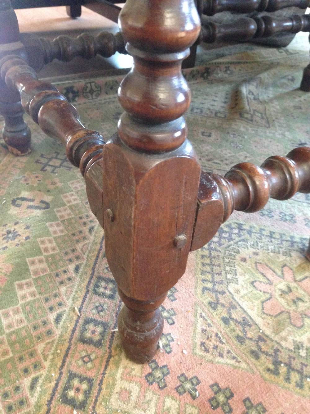 Another important transition, actually the source inspiration for this article, is the transition of a table or stretcher leg from round to square pommel, as might be seen in a gate-legged table or a country kitchen table.