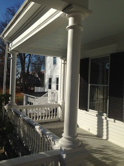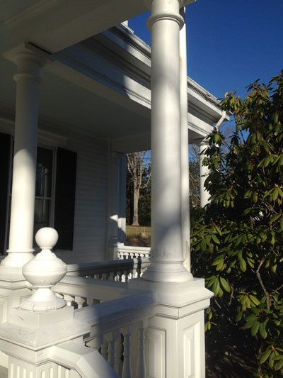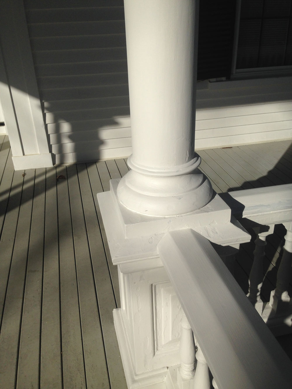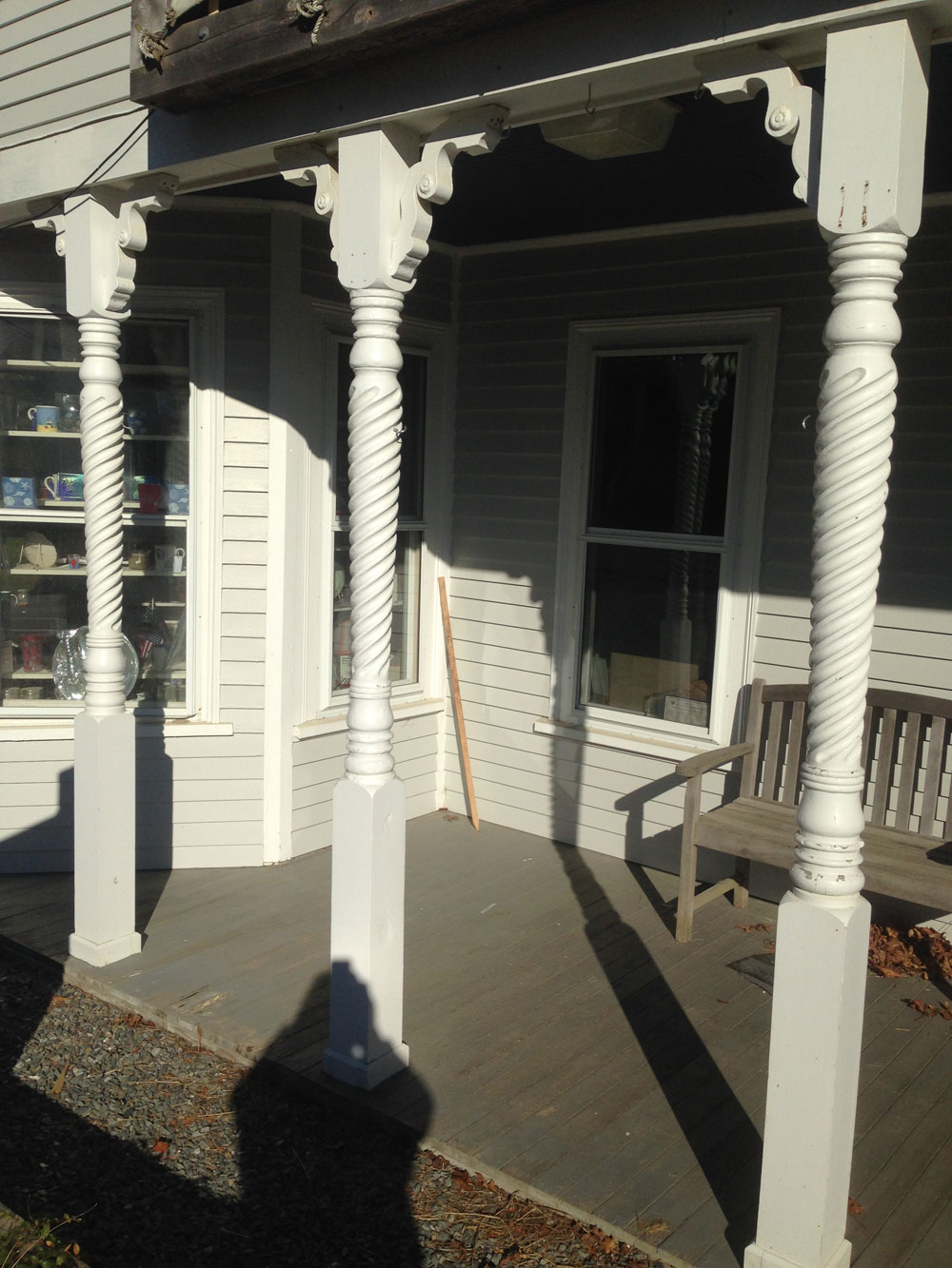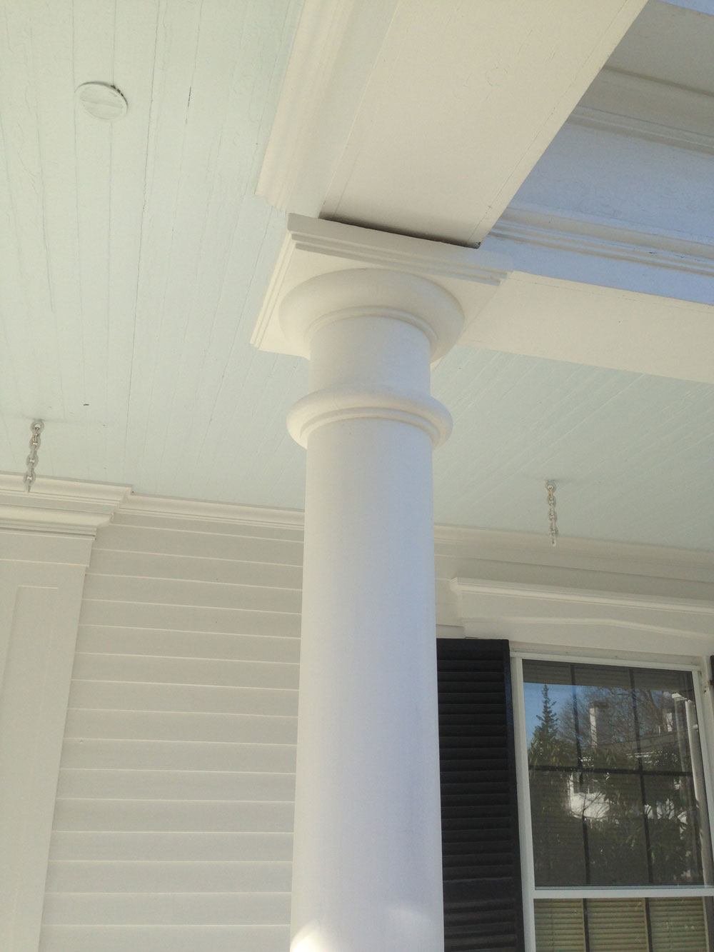 From a larger perspective examine how a porch post develops a critical relationship between the floor beneath it with the column base and the ceiling above with its often equally decorative capital.