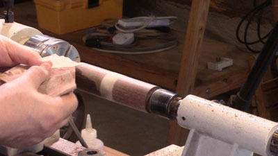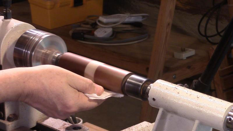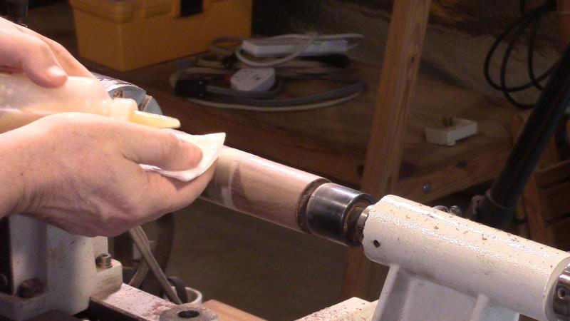 Figure 12 - After wiping on polish over the whole piece, I turn on the lathe