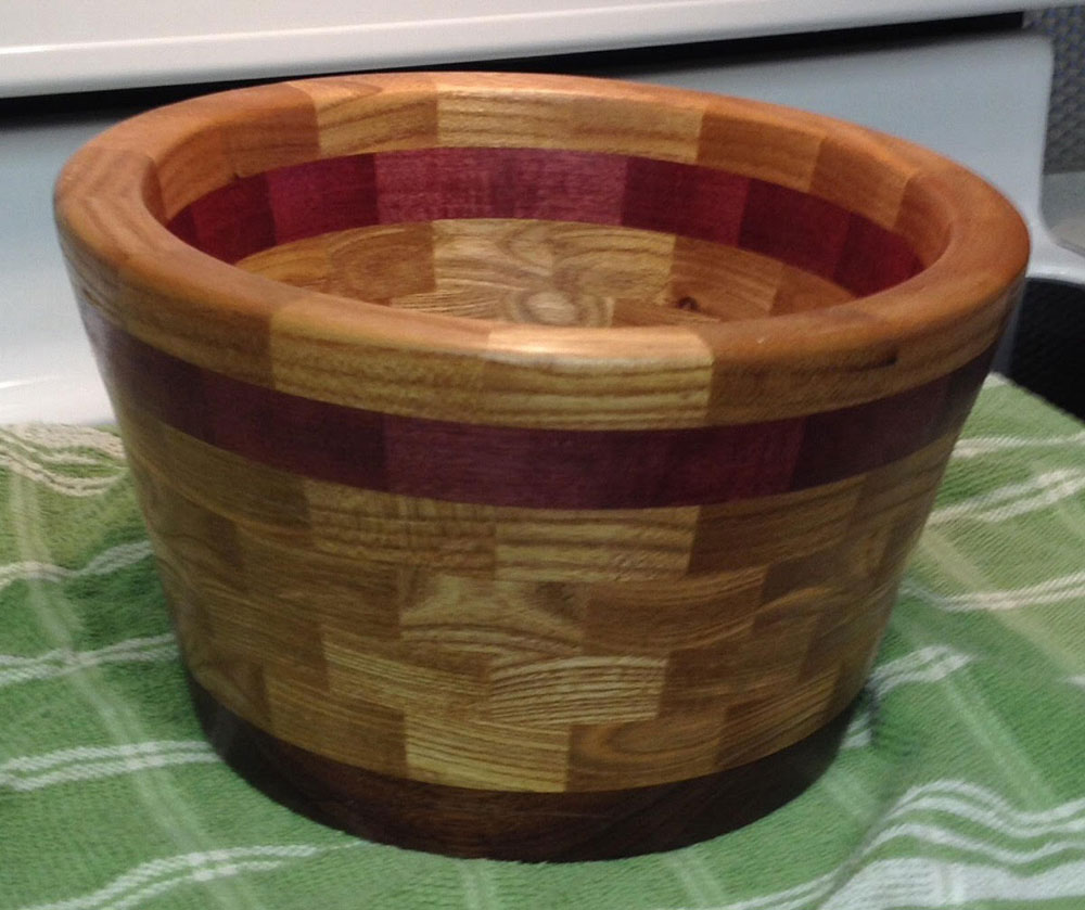 Last spring, I watched a video on YouTube of bowl turning and I thought maybe I should give that a try since I already had a lathe. I started turning simple bowls and making glue-ups of different woods for candlestick holders. I made and sold several of each and gave some to family members.