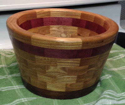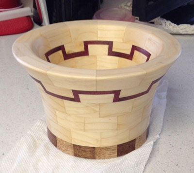 With the programs I didn't have to measure each segment length and angle. I also watched a video of making a wedgie sled for cutting the segments. I promptly went out to the woodshop and constructed one. I also watched a video on "Segmentology." I was awestruck! I now have the sled and the wedgies that I use to create my bowls. I will probably not be going back to just plain bowl turning!