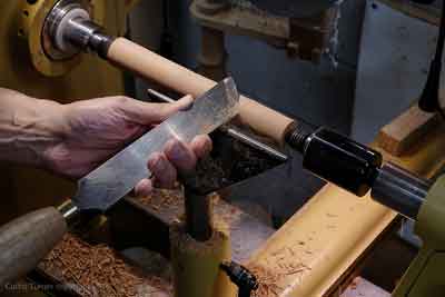 amount of honey that can be held by the dipper. I chose to turn the grooves first. I laid out the general