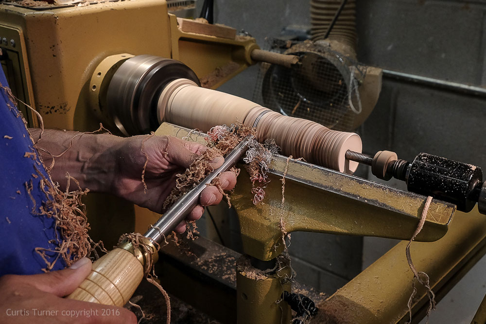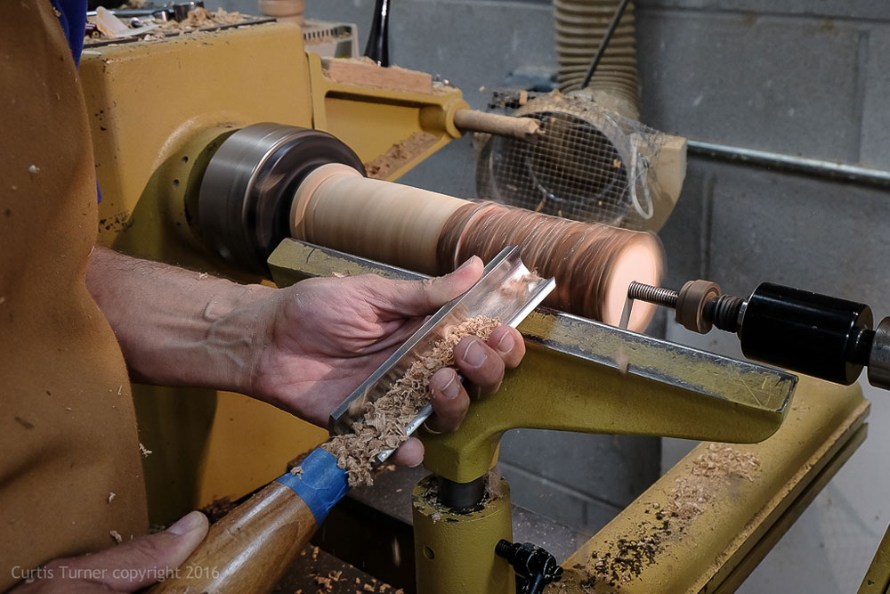 Next came the real test. I chose to start with a spindle roughing gouge at a moderate speed of about 600 rpm.
