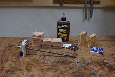My project this month involves turning a new medium, leather. You may be familiar with fixed blade knives that have a stacked leather handle. This type of handle has enough texture to offer a secure grip. It is very durable and looks better with age. I have turned many mallets but this is the first time I'm making a mallet with a stacked leather handle. The name should give you a clue as to the process. The concept is simple. A series of leather disks are stacked on a metal core glued and shaped to the desired form.