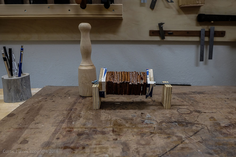 Next, I covered two plywood squares in packing tape to use as the cauls for the glue up.
