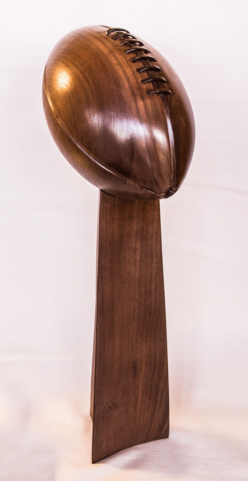 I had a customer ask for a Vince Lombardi Trophy made from wood. Since I like to learn new things I said yes. For the first time I used a drawknife, a scorp and cabinet scrapers. I also did some carving for the first time.