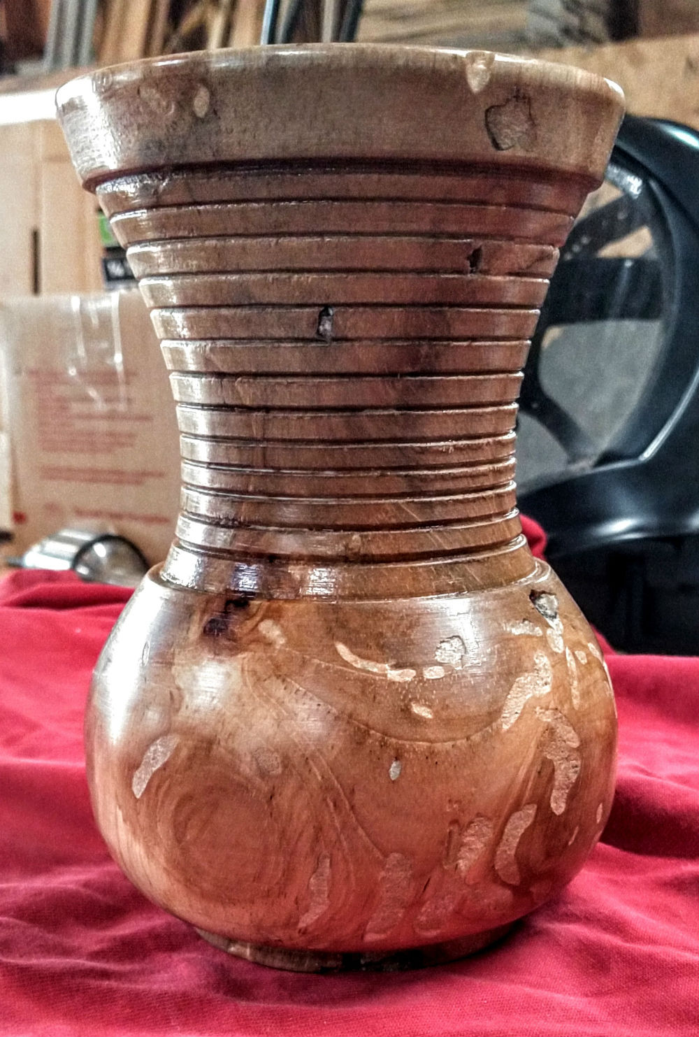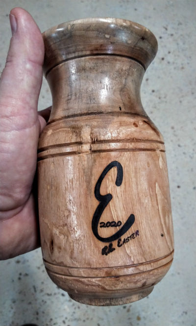 I was consumed. When I went in at night, I was more tired than if I had just reroofed a house. My son kept the goodies coming: a soft rubber mat to stand on, a chuck for the lathe, sandpapers, finishes, a branding iron, etc. Yes, I did realize how extremely fortunate I was. A new part of my brain had come to life and with it came unexpected amazing results.
