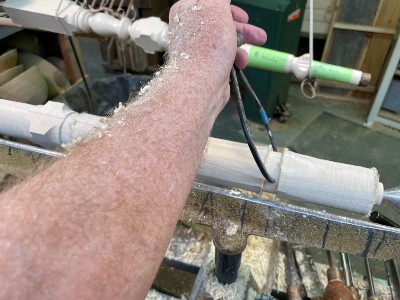Again, completing the details on the right (furthest away from the power) and working toward the headstock reduces the challenges of vibration and allow for clean, smooth cuts from the skew and gouge.