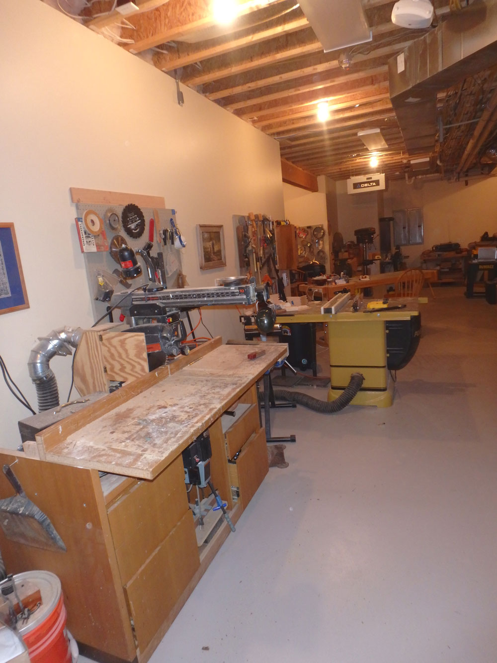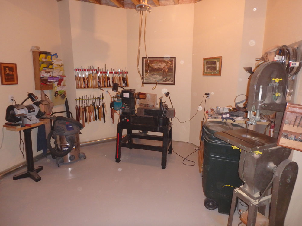 When we moved to Virginia and built our house, my shop was the first project completed in the basement. It serves double duty as both a woodturning alcove and a woodworking shop. I tell people who see it that I can create a lot of sawdust in a hurry, but I do have a dust collector and air cleaner! I have more than a few pieces of wood waiting to become "the next gift" including some 1,000 year old redwood root and a bunch of cherry burls. So much wood, so little time!