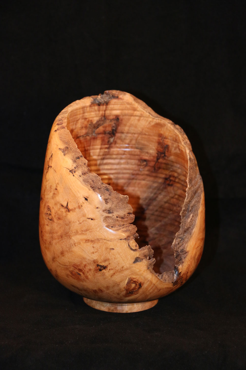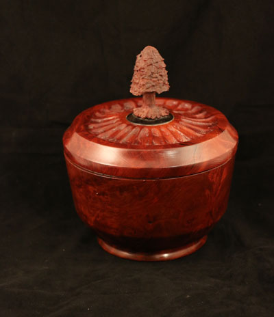 I primarily turn bowls, boxes and some hollow forms. Most of my wood comes from my brother-in-law in northwestern PA in the form of cherry burls and crotches. He got the old Powermatic and began turning cherry burl natural and smooth edge bowls and has since upgraded to a Powermatic 3520. He has turned well over 1,000 pieces and given most of them away. Woodturners are like that, we love to share our ideas, tools, wood, information and creations.