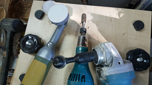 . It's new on the market. It's a ball on a shaft with a circular cutter and does an amazing job of hollowing. I love it. I also used an electric die grinder with a carbide round nose cutter and I modified the Proxxon Long Neck Grinder to take 2" sanding discs. It still took a bit of hand sanding before I was done. Now I have a great spoon for the kitchen.