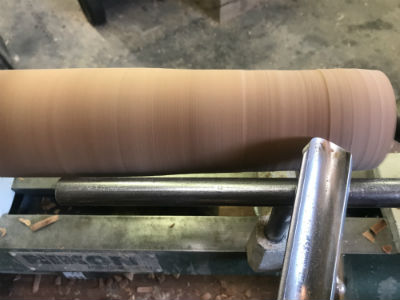 The wet shavings stream away quickly and this style gouge leaves an impressively smooth surface, skew ready.
