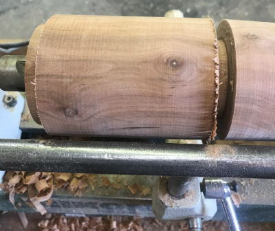 Given that many logs for spindle and bowl blanks are fairly short, using sacrificial wood scraps to space and support the log