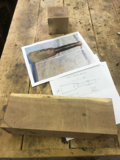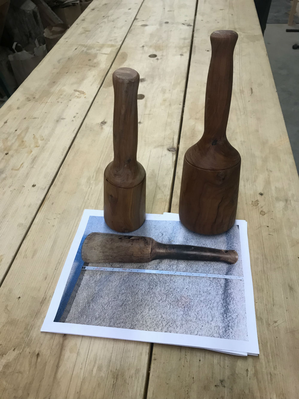 hoped I would replicate his grandfather's ancient and well-used carver's mallet in different sizes/weights from some of the logs so he could use them in his own carving.